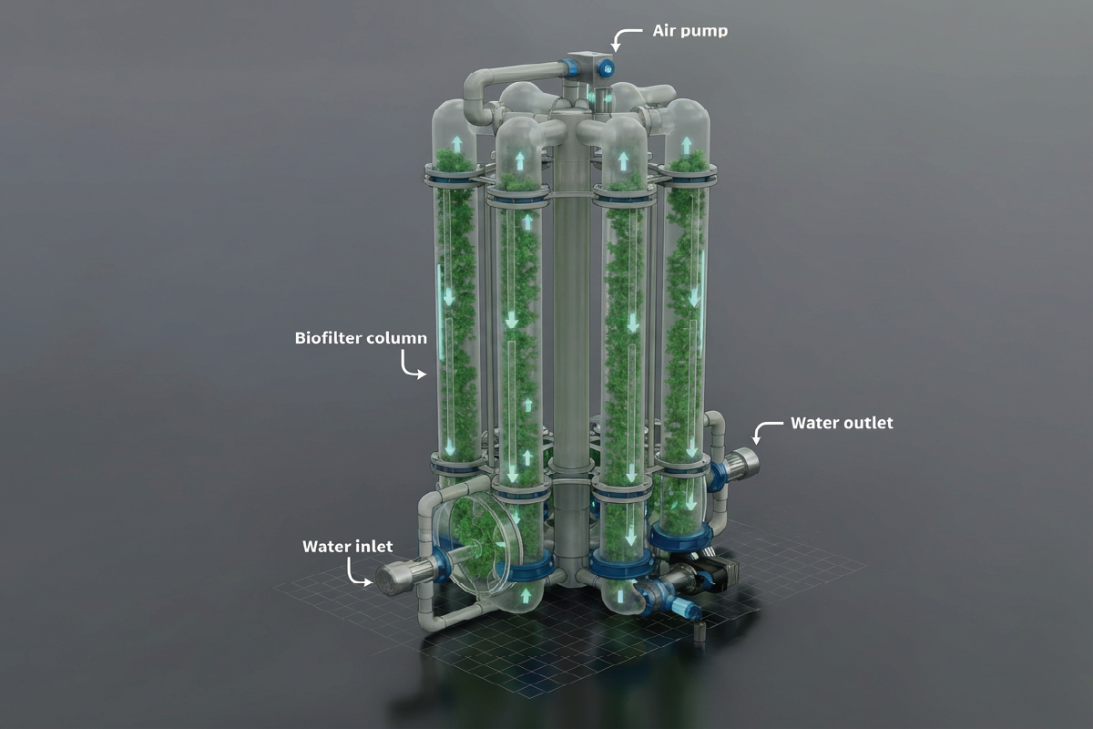 Alboom’s core solution is the ABU-100 Modular Algae Biofilter Unit, a plug-and-play system designed for urban farms operating at the building and community scale. Using immobilized microalgae biofilms, the ABU-100 passively treats hydroponic wastewater, recovers nearly all usable nutrients, and enables significant water reuse, without chemical additives. Recovered nutrients are converted into liquid biofertilizer that can be reused on-site, reducing operating costs and dependence on imported synthetic inputs.